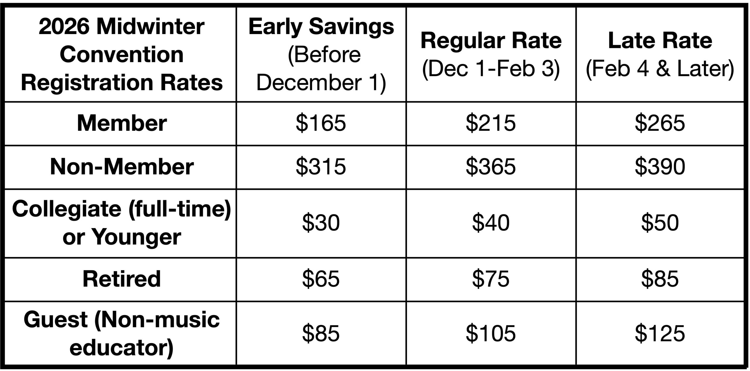 After many hours of discussion by the Executive Board and MMEA Board of Directors, the decision has been made to cancel the in-person 2026 Midwinter Convention and MMEA’s associated in-person student events in Minneapolis. MMEA cannot uphold its mission to develop, promote, and support equitable and comprehensive music learning and teaching when the health and safety of many in our communities are at risk. Please click the LINK for a message from MMEA’s Board President, Dr. Christopher Rochester.