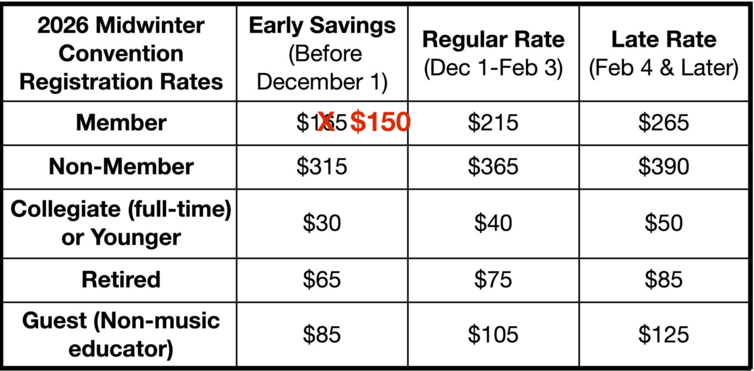 - CONTINUED THIS YEAR! You can register for ONE DAY ONLY and discount the above rates by 50%. We hope you make time for all three days, but we know it is becoming more and more challenging to get subs. We hope those that haven’t been able to attend MWC in the past will be able to attend in 2026!